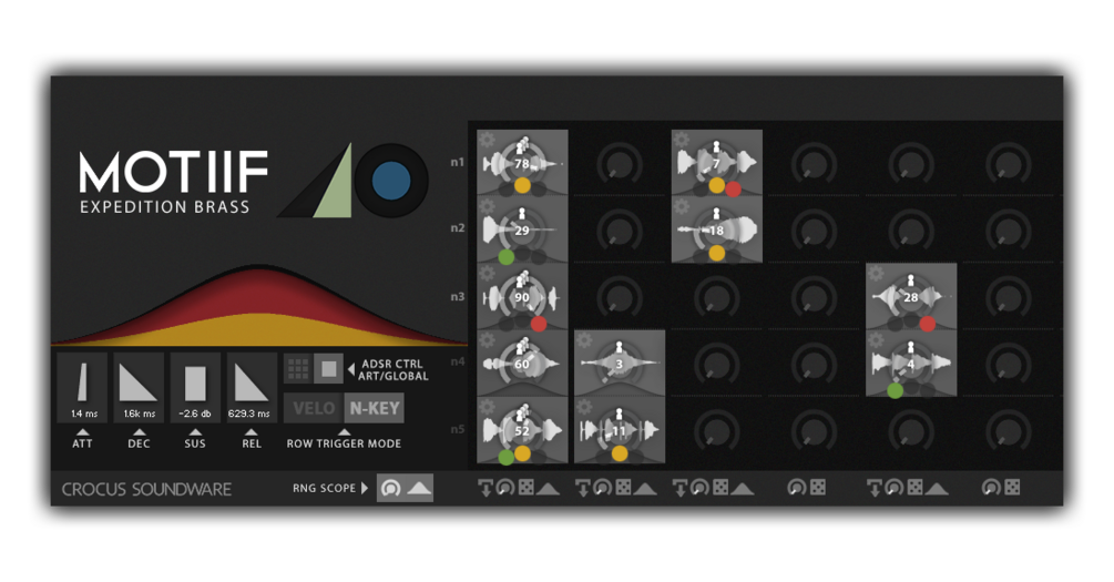 Crocus Soundware is proud to present MOTIIF: EXPEDITION BRASS, a powerful creative instrument built from intimately recorded Trumpet, Trombone, and Tuba performances, designed for the full version of Kontakt 6.7+. At its core is our novel Polyrhythms Engine, which leverages Kontakt's Time Machine Pro feature and allows you to generate endlessly evolving, tempo-synced musical motifs simply by layering MIDI notes. Whether performed live on a keyboard or composed in your DAW, each MIDI note can trigger its own unique tempo-synced pattern. The result combines the immediacy and flexibility of a traditional multi-sampled Kontakt instrument with the beauty and compositional complexity of a phrase library. MOTIIF is an effortless engine for crafting infinite ostinatos.